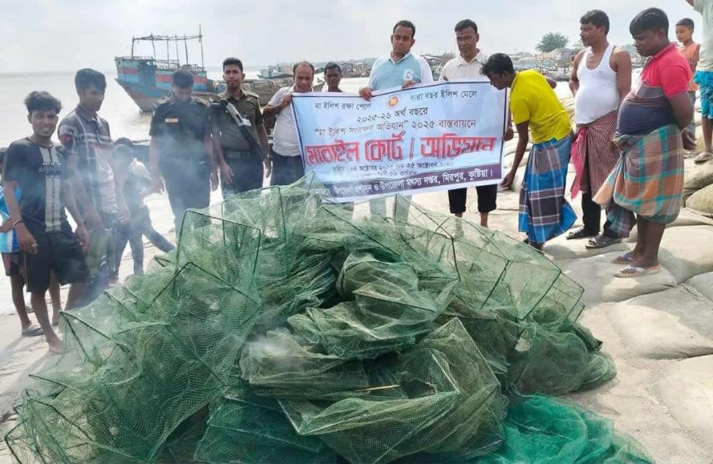 মিরপুরে মা ইলিশ সংরক্ষণ অভিযানে জাল পুড়িয়ে ধ্বংস, নৌকা জব্দ