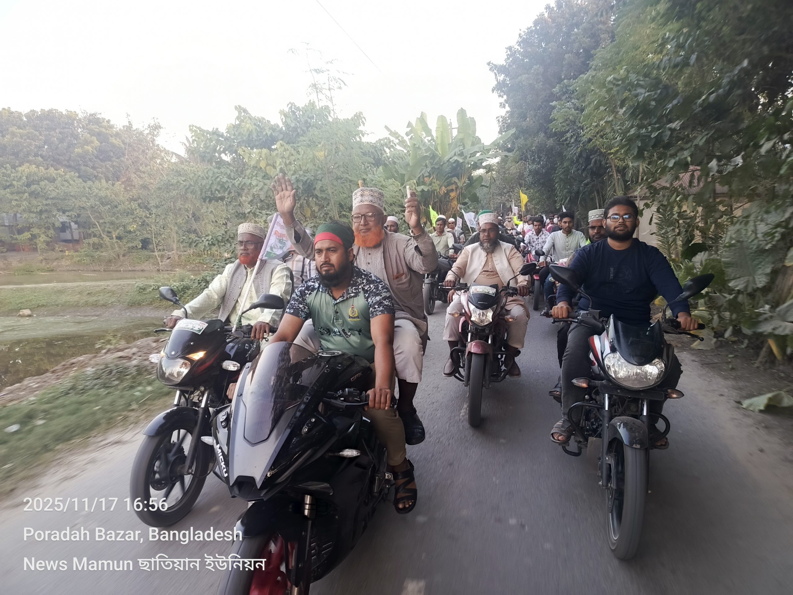 কুষ্টিয়া মিরপুর ছাতিয়ান ইউনিয়নে আব্দুল গফুরের দাঁড়িপাল্লা মার্কার ঐতিহাসিক মোটরসাইকেল শোডাউন